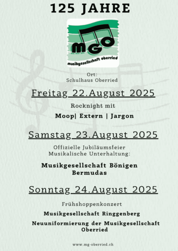 Die Musikgesellschaft Oberried MGO feiert ihr 🍾125-jähriges Jubiläum.🍾